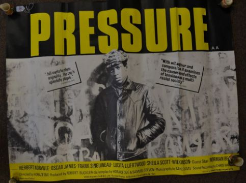 PRESSURE: An original cinema film quad advertising poster for 1976 film Pressure. With bold text and notation, and large pictorial. Unframed