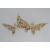 A vintage yellow metal brooch in the form of two butterflys with Aurora Borealis rhinestone set bodies and roller clip clasp. Measures 8cms.