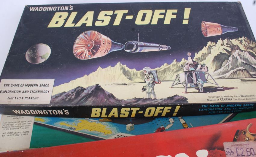 GAMES: A good collection of vintage board games, to include some sought after titles; Campaign, Formula One, Blast Off and others. x5 in total.