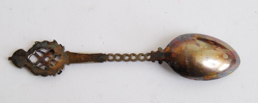 COMMEMORATIVE SPOON: A rare 1934 dated HMS Dorsetshire ' Calcutta Rifle Cup ' presentation tea spoon, the bowl engraved with the above details. Silver plated spoon.