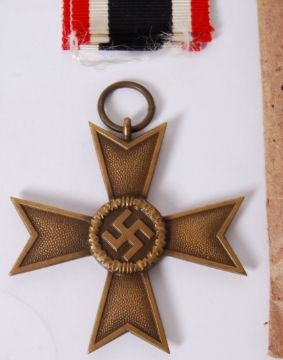 WAR MERIT CROSS: German issue kriegs berdienfi medaille ( War Merit Cross ). Second Class. Absolutely mint, within the original paper slip case, and unused medal ribbon.
