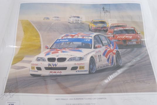 RACING PRINTS: An original Graham Turner and Andy Priaulx signed racing print, along with two other similar prints. One a concept car design, the other a Graham Turner style print.