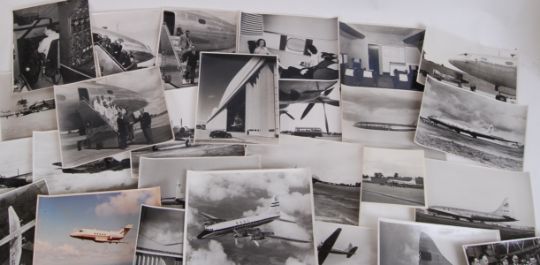 BRISTOL BRABAZON PHOTOS: A rare and unique collection of original vintage press and other (likely unique) photographs, all pertaining to Bristol Aircraft Co and Filton. Largely featuring what appears to be the launch of the Bristol Brabazon, there are several photographs of flights, landings, interiors and various officials inspecting the aircrafts. Also some Concorde interest, and a few other images. Mostly 24cm x 19cm size, some smaller. Approx 40 images in total. Most stamped to verso with Bristol and address details.