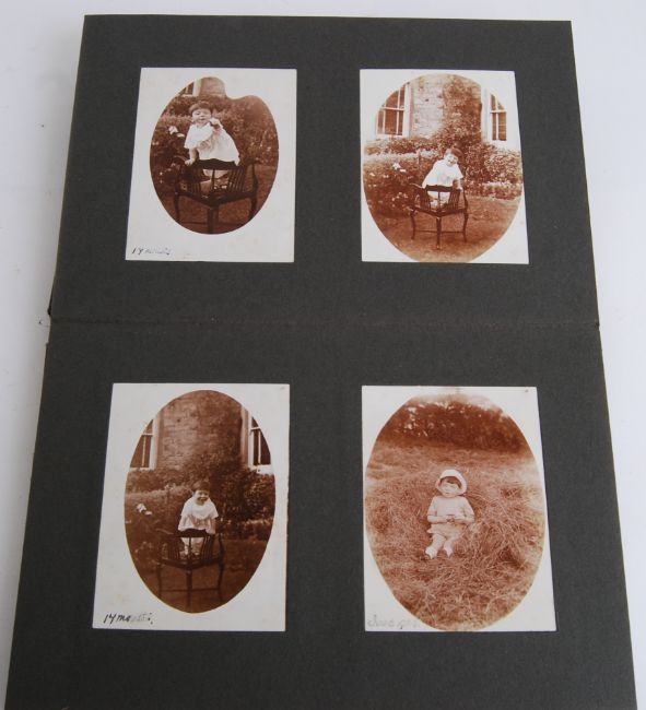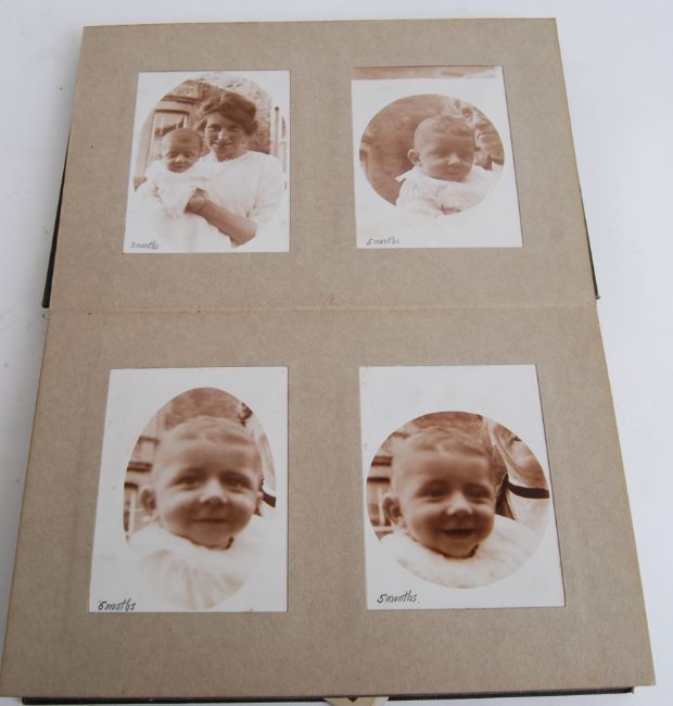 PHOTO ALBUM: A charming local interest 1920's photograph album all of a local unknown family (likely from Kingswood), the entire album dedicated to an infant, with photographs from birth all the way through to early teens. A unique album, with many images. Some loose in back. Unknown provenance.