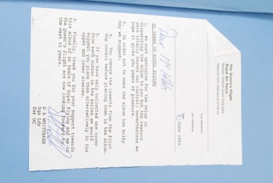50 YEARS OF ROYAL FLYING: A commemorative set of autographed First Day Covers ' 50 Years Of Royal Flying ' - ' The Queens Flight '. HUGE quantity of signed and some flown covers. Most signed by wing commander Beresford, some multi signed. Great collection. Some 35 in total.