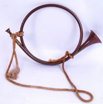 BUGLE: A decorative miliary original copper signal bugle, with original tassle rope.