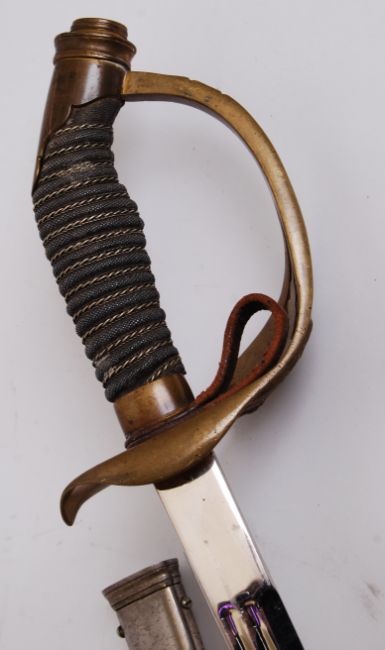 GERMAN IMPERIAL SWORD: An original Imperial German Model 1889 Infantry Officers Sword, 28 ¾ inch double fullered blade. Fixed Imperial Eagle guard with cipher for Wilhelm II to the chest. Cipher of Wilhelm II to handle also.