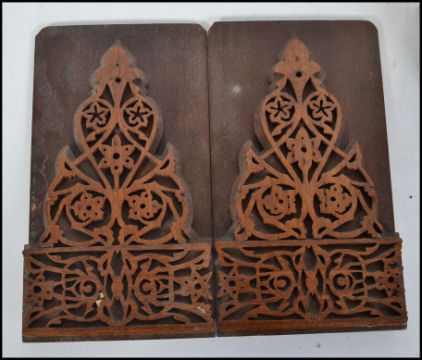 A pair of mid century Black Forest carved book trough / bookends in the form of Boars along with another pair of bookends L31cm