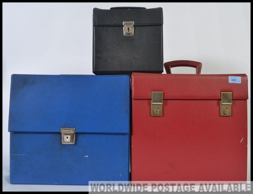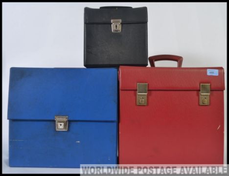 A collection of three vinyl record carry / storage cases. To include both 12" and 7" cases