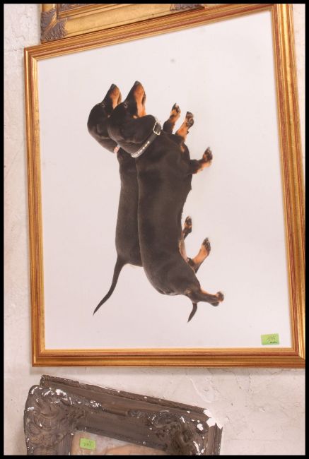 A collection of prints etc to include farrier scene, dachshunds, ships, erotic comedy and others etc, Largest 80cms x 60cms