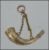 A gold unmarked gold fob watch winding key in the form of a hunting horn tests 9ct gold with hard stone end and etched decoration. Measures 3cms. Weight 2.2g