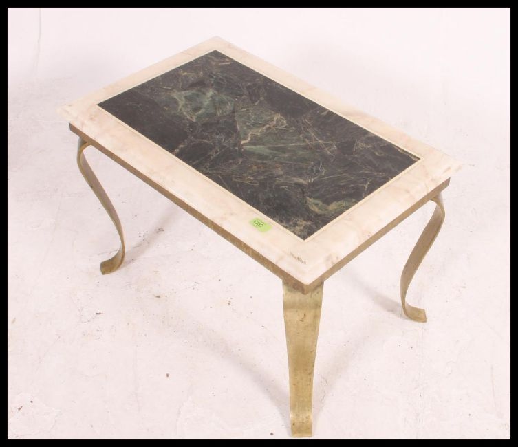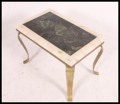 A good quality marble and brass occasional table from the 20th century. The think marble top on shaped brass legs H46xW70xD46cm