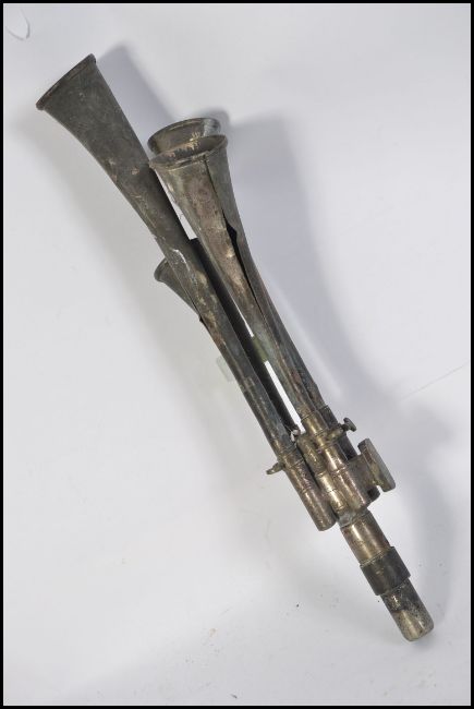 A vintage early 20th century Brevete car / automobile horn of French origin bearing notation ' le testephone st etienne ' L47cm