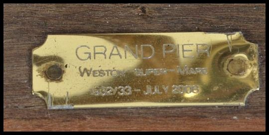 An unusual Silver plate hot water service by Harrods set to a wooden plinth taken from Weston Super Mare Pier together with another wooden plinth marked for the Grand Pier - likely salvaged and upcycled after the fire in 2008 W31cm