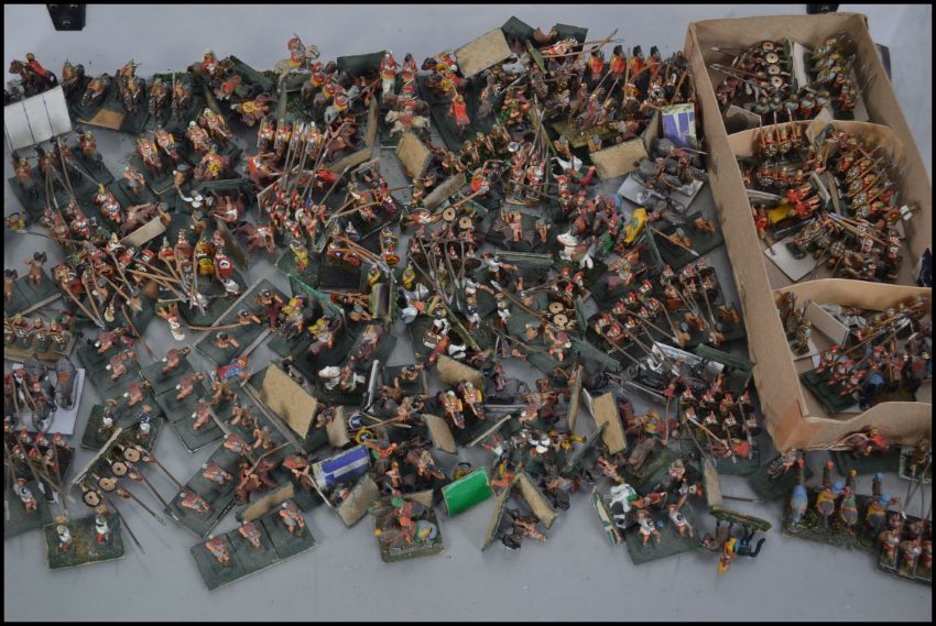 A collection of white metal painted gaming soldiers. Small scale - Romans, Centurions and similar.