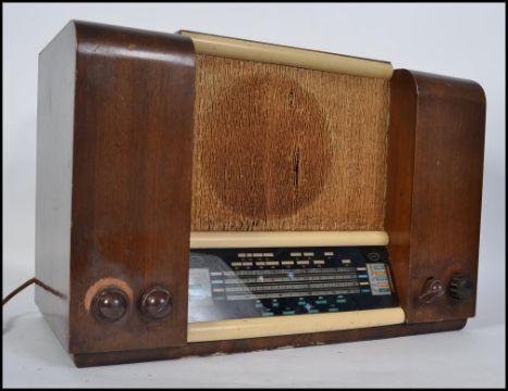 An original vintage Invicta radio, with knobs to front and strap to top