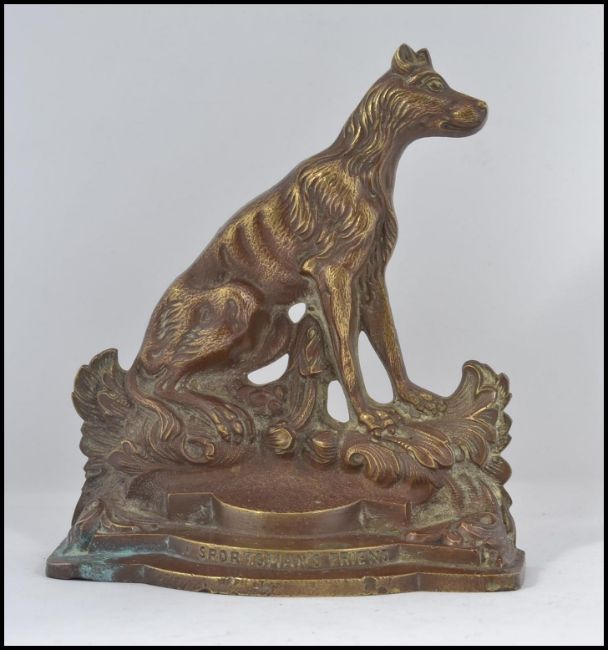 An early 20th century Sportsman's Friend brass doorstop in the form of a greyhound entitled Sportsman's Friend with Rd No 694246 to the rear H17cm