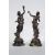 A pair of spelter male and female figures of Harvest with applied gilded finish representing Harvest, both signed Ch Levy, both on turned cylindrical timber bases bearing brass plaques Moisson & Verdanges