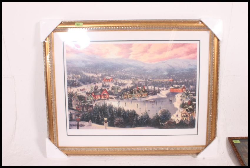After Thomas Kinkade, framed and glazed print entitled ' Tinsel on Snowflake Lake - The Legend of St Nicholas Circle