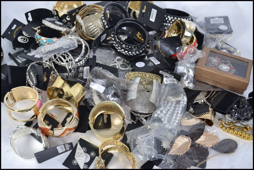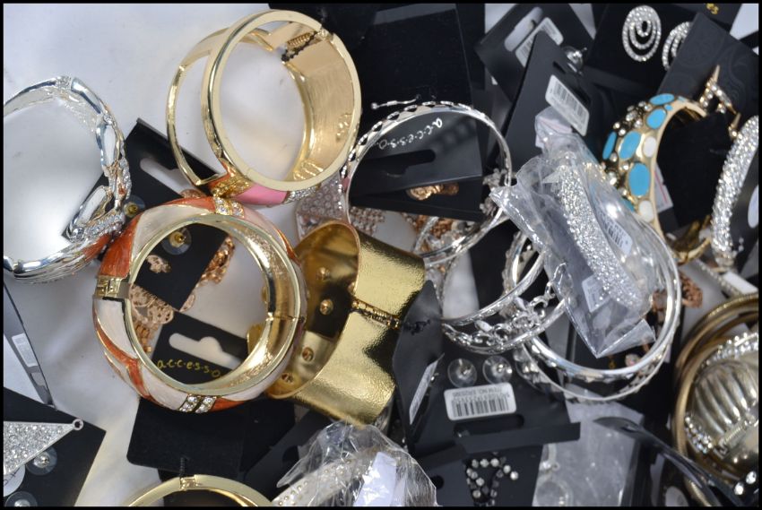 A collection of costume jewellery being contemporary, many of the items new with tags to include earrings, bracelets, necklaces etc