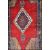 A Turkish handwoven rug of colourful form with central red medallion having geometric scrolling borders with blue banding. Measures 192cms x 113cms