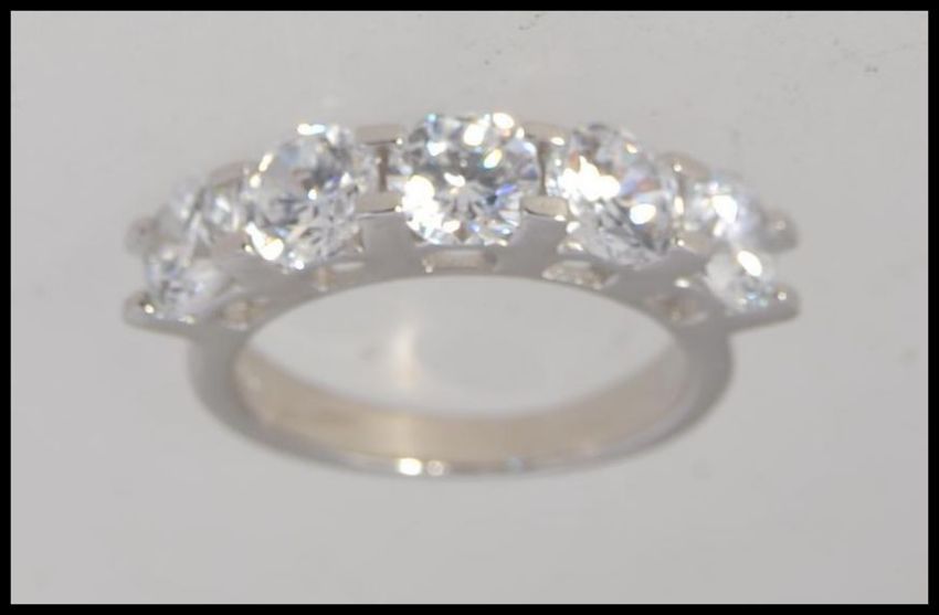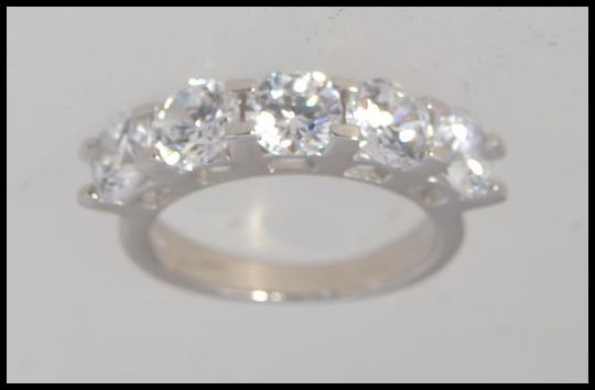 A contemporary ladies silver having inset 5 stone cz's. Total weight 4.9g / Size n.5