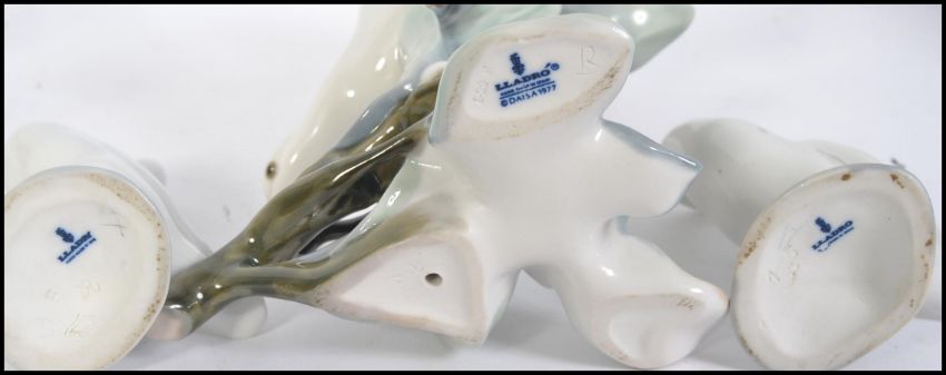 A collection of Lladro figurines, all blue stamped for Lladro to include gull on naturalistic plinth, swans and geese. H29cm