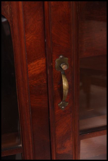 A Canadian mahogany inlaid Federal / Regency library bookcase display cabinet / sideboard originally belonging to Leonard Cohen. The furniture marked for Malcolm Furniture. Oak lined drawers with brass handles. Matching sofa table and bow front sideboard also available in lots 1460 & 1462. Measures H168 x W96 x D42 (cm).