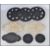 A large early 20th century hand sewn funeral Jet and bakelite beadwork motif cloak cape clip clasp. Measures 10cms. Together with Two 1920s large beadwork motifs in the shape of a orchid flower. Measures 11cms, a large early 20th century hand sewn funeral Jet and bakelite beadwork motif. Measures 10cms and a further 3 large early 20th century hand sewn funeral Jet beadwork motifs. Measures 9cms.