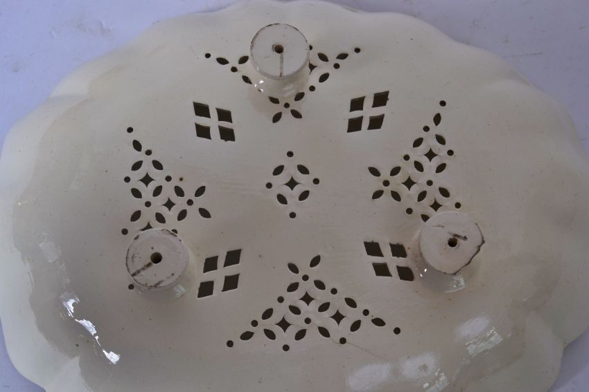 A Creamware Drainer Dish believed late 18th century of fluted oval form having nine foliate and geometric pierced panels.
