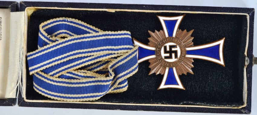 MOTHERS CROSS: An original rare bronze Mothers Cross Nazi German award medal. Within the original box. By Wilhelm Deumar.