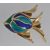 A vintage yellow metal figural brooch pin in the form of an angel fish with enamel decoration, paste set eye and roller clasp. Measures 5cms.