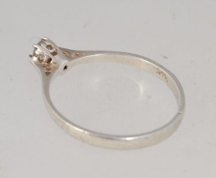 A 925 silver ring set with a solitaire clear round cut stone in a gallery setting. Size P. Weight 1.5g