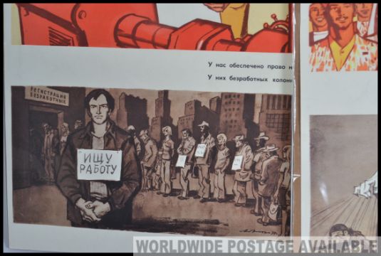3 vintage 1980's Russian propaganda posters in colour and black and white with notation. Measures: 59cm x 43cm.