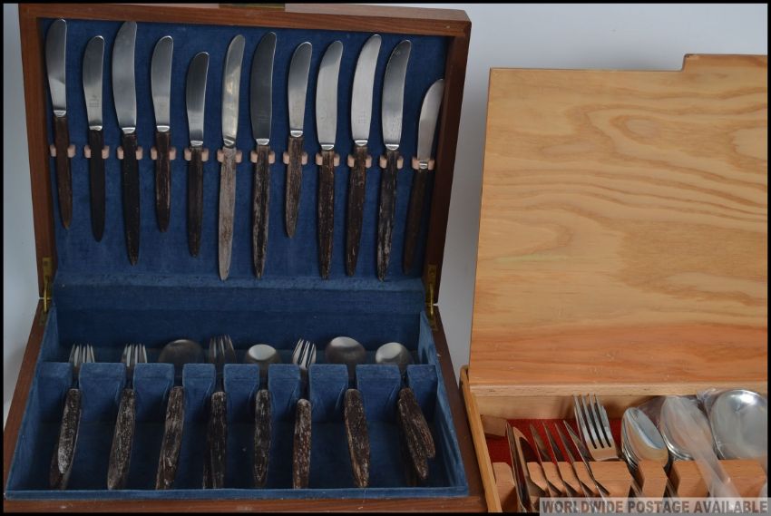 A good mid century Danish rosewood handled canteen of cutlery together with another cased canteen of cutlery