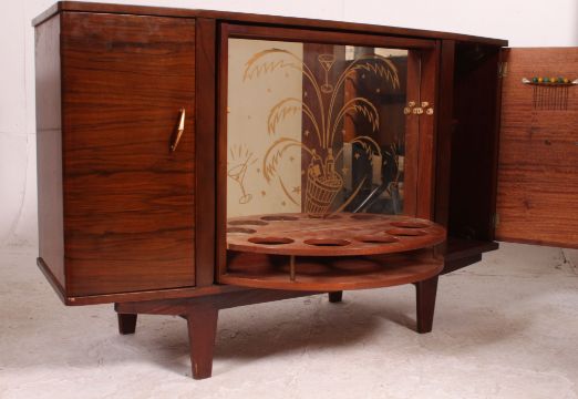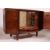 A 1950's walnut bookcase sideboard cabinet having glass centre with cupboards raised on tapered legs. Measures: 75cm x 120cm x 45cm.