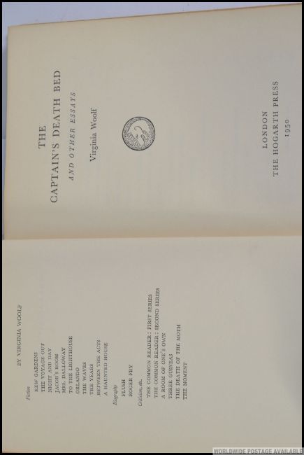 WOOLF, Virginia; The Captain's Death Bed and Other Essays. First Edition 1950. With dust cover. Hogarth Press, London, 1950