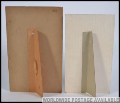 2 vintage 1950's advertising posters being wooden backed. One for Gallagher cigarettes, the other for Nil-Sim-il-e shoes. Measures: 28cm H