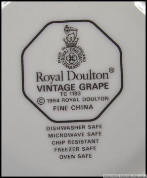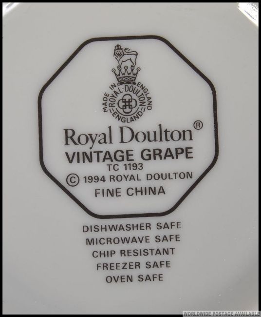 A Royal Doulton ' Vintage Grape ' pattern tea service comprising the teapot, cups, saucers and bowls, milk jug, sugar bowl, larger jug etc. See illustrations, all stamped to underside