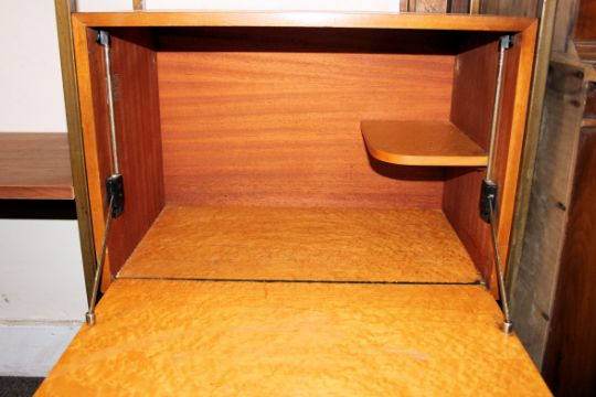 A retro 1970's Ladderax teak modular wall system having metal uprights and bars complete with shelves, some being newly made( very well done ) from teak. Measures: 200cm x 140cm.