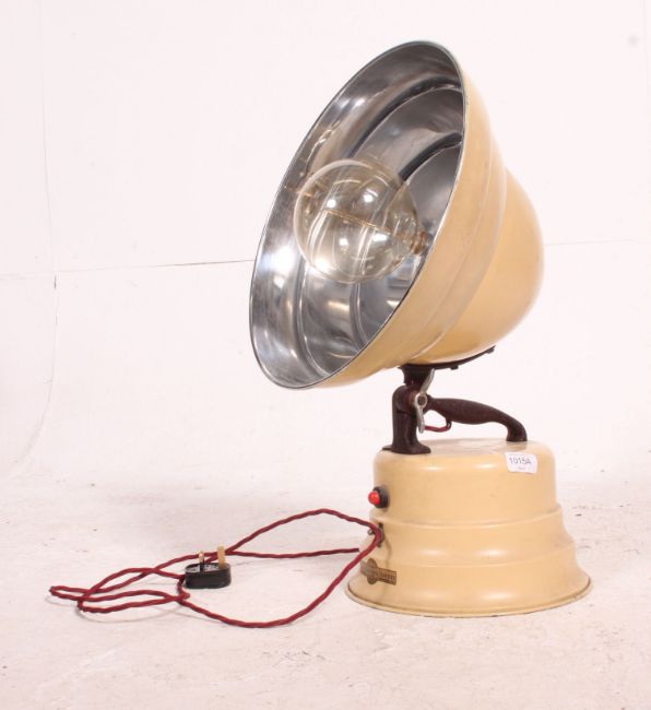 Retro vintage Barber Electrical Services mid 20th century heat lamp , converted to table lamp complete with Eddison bulb. Measures: 58cm x 38cm x 32cm.