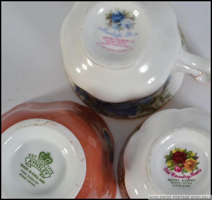 A part service Royal Albert Country Roses tea service, to include trios, a small and large teapot along with Moonlight Rose