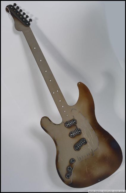 A 20th century metal work study of an electric Stratocaster electric guitar. Measures: 98cm.