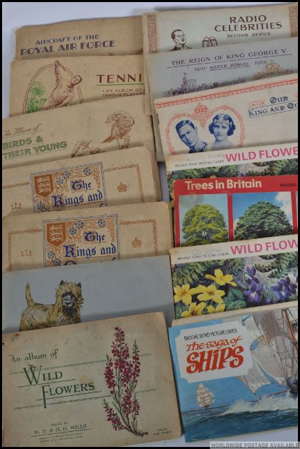 A collection of cigarette and tea cards from Wills, Players and Brooke Bond to include Tennis, Aircraft of the Royal Air Force, Birds and Their Young, Dogs, Radio Celebrities etc
