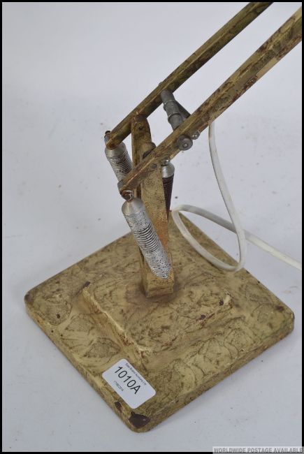 A 1940's pre-war Herbert Terry 2 step square base anglepoise lamp with original scumble glaze finish complete with pendant shade. Measures: 80cm H