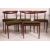 A good set of 4 1970's retro Danish teak propeller back dining chairs raised on turned legs with green overstuffed padded seats. Matching dining table in lot 1145. Measures: 76cm x 49cm x 48cm.