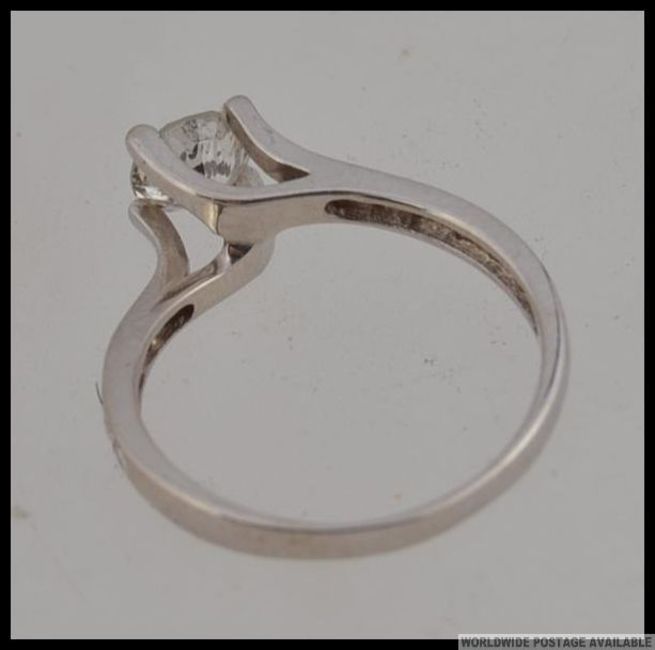 A contemporary tested 14ct white gold and diamond ladies ring having approx 65pts stone to centre with further approx 20pnts to shoulders, total approx 85pts. Marked 585. Weight 2.1g / Size N