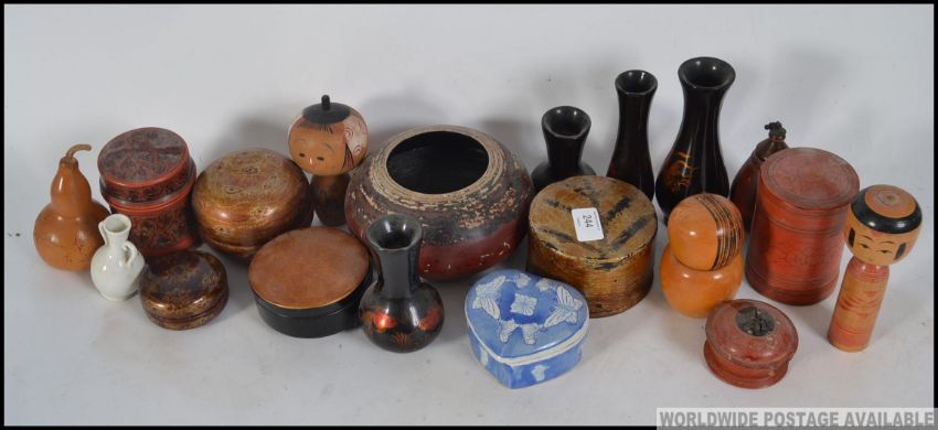 A collection of 20th century items to include laquered boxes, brass wares etc