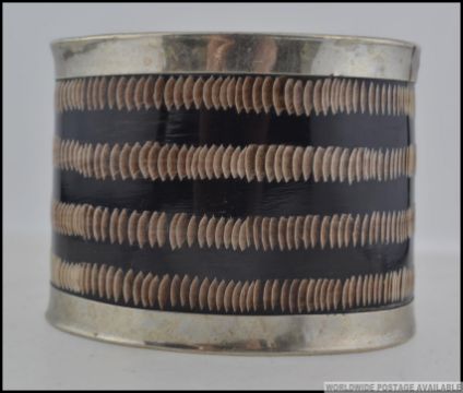 A silver and ox horn mid century ladies bracelet. The silver banded horn with chased / etched detailing. Total weight 54.9g
