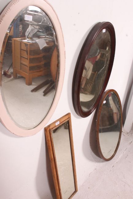 An Edwardian mahogany oval wall mirror together with another similar and also a painted oval mirror ( 3 total ) Measures: 90cm x 60cm.